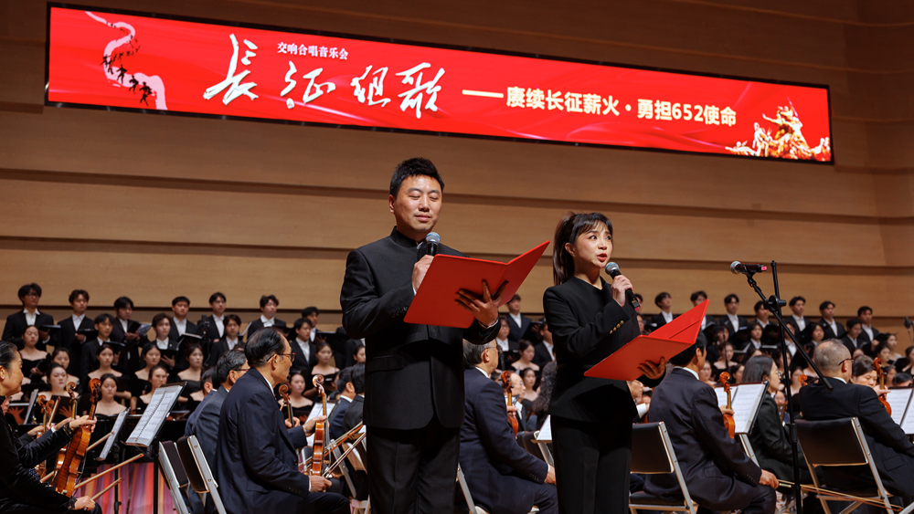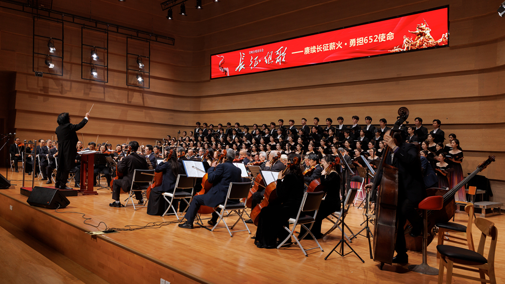 校党委书记张力、党委副书记陈范华等莅临现场,与党员师生代表一同观看演出。本次音乐会以大型声乐套曲《长征组歌》为核心内容,该作品被誉为“音乐中的长征史诗”。演出曲目以《告别》《突破封锁线》《遵义会议放光辉》等十个乐章构建长征的时间与空间脉络,串联起红军告别苏区、突破封锁、遵义转折、四渡赤水、强渡大渡河、会宁大会师的壮阔征程,以音乐的形式描绘出一幅全景式的长征史诗画卷。整场演出通过交响与合唱的立体交融,艺术地再现了中国工农红军艰苦卓绝、气壮山河的伟大征程,展现了中国共产党人坚定的理想信念和百折不挠的革命意志。全体观演党员师生在音乐中回望峥嵘岁月,一同感受信仰力量。